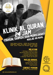 Kini Masjid An-Nahl membuka Klinik Qur’an & Tahfizh Muroja’ah 24 jam.